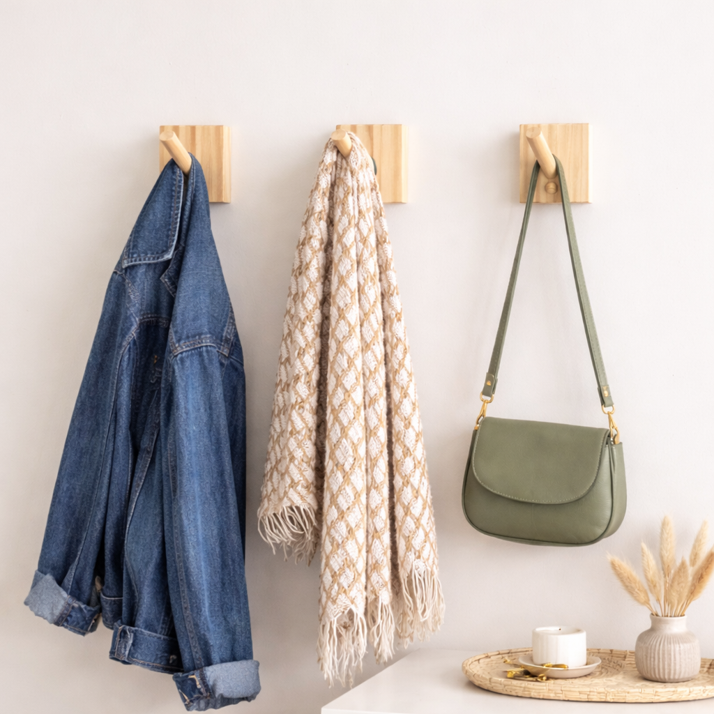 Uma opção de cabideiro pra quem busca praticidade e economia de espaço. Este Kit com 3 unidades de cabideiros de parede é projetado para suportar casacos, bolsas, chapéus, toalhas e outros itens essenciais do dia a dia e você terá a capacidade de transformar o ambiente em um espaço mais funcional e organizado. Cada cabideiro de parede deste kit é fabricado em madeira de pinus e a sua instalação é simples e segura, garantindo que você possa começar a usar imediatamente. Você pode optar por instalar os cabideiros em diferentes posições visando a economia de espaço e nos diferentes cômodos da casa.