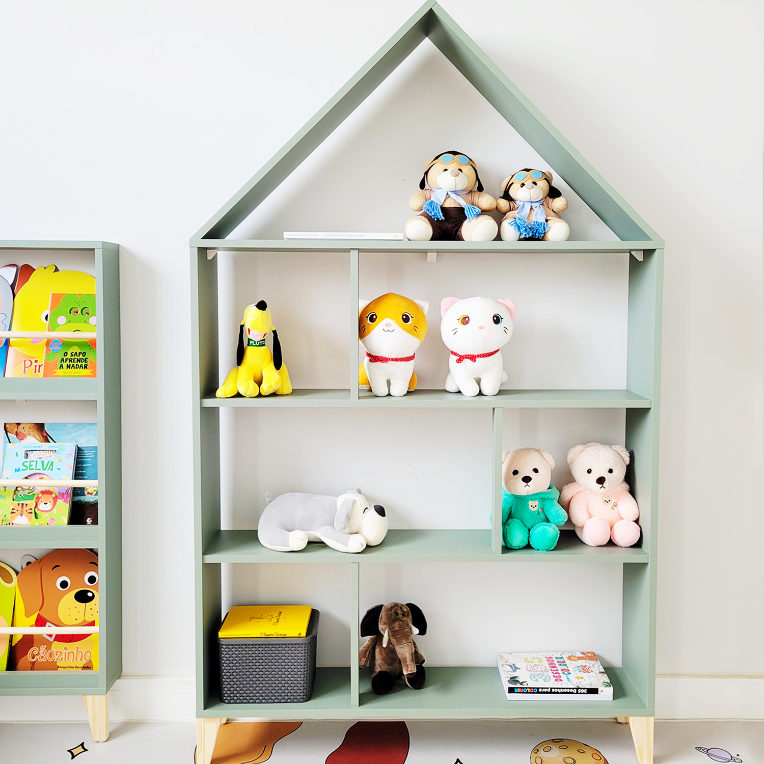 A Estante Infantil Bobi, agora com 155 cm de altura, é uma peça única para decorar o quarto infantil ou sala de jogos, seja para enfileirar os livros de contos ou brinquedos favoritos do seu filho ou filha. Organize os livros infantis e torne as histórias para dormir mais leves e divertidas. Super resistente esta estante suporta até 65kg distribuídos, ideal para enchê-la de livros. O modelo em casinha adiciona um elemento de decoração fofo ao ambiente infantil. A estante conta com sistema anti-tombamento a ser fixado na parede para deixar o ambiente ainda mais seguro. Os pés são fabricados em madeira de pínus com detalhes arredondados e ocultando os parafusos. Combine-a com nichos e prateleiras para completar a decoração.