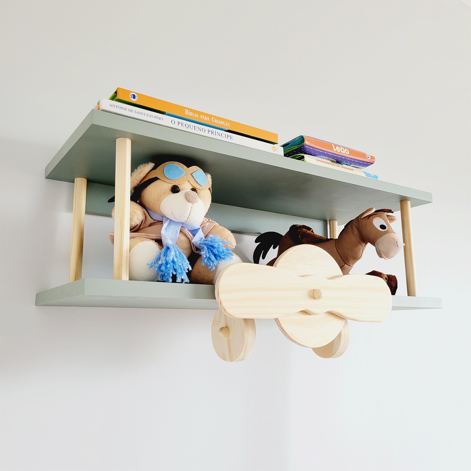 Um mimo trabalhado artesanalmente para enfeitar e encantar, a Prateleira Modelo Aviador da Madeira Prime inspira personalidade ao quarto infantil. Use-a também para decoração de brinquedoteca e em festas infantis.