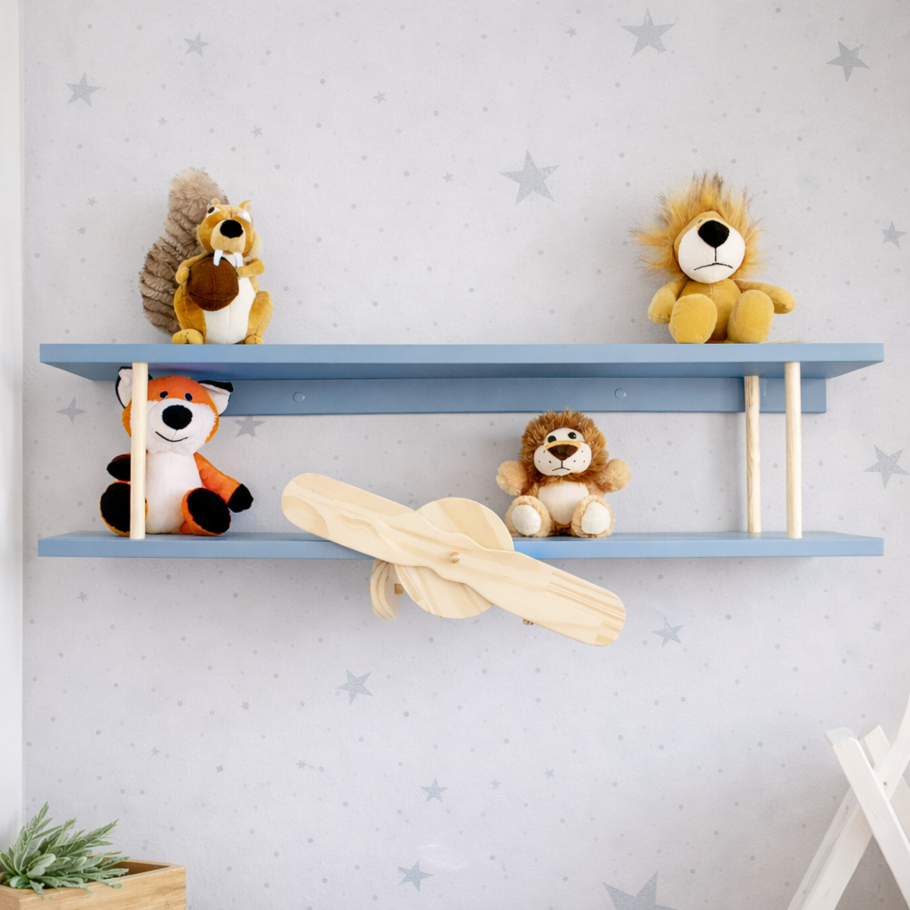 Um mimo trabalhado artesanalmente para enfeitar e encantar, a Prateleira Modelo Aviador da Madeira Prime inspira personalidade ao quarto infantil. Use-a também para decoração de brinquedoteca e em festas infantis. Ideal também para ambientes Montessori, que harmonizam naturalmente com madeira clara.